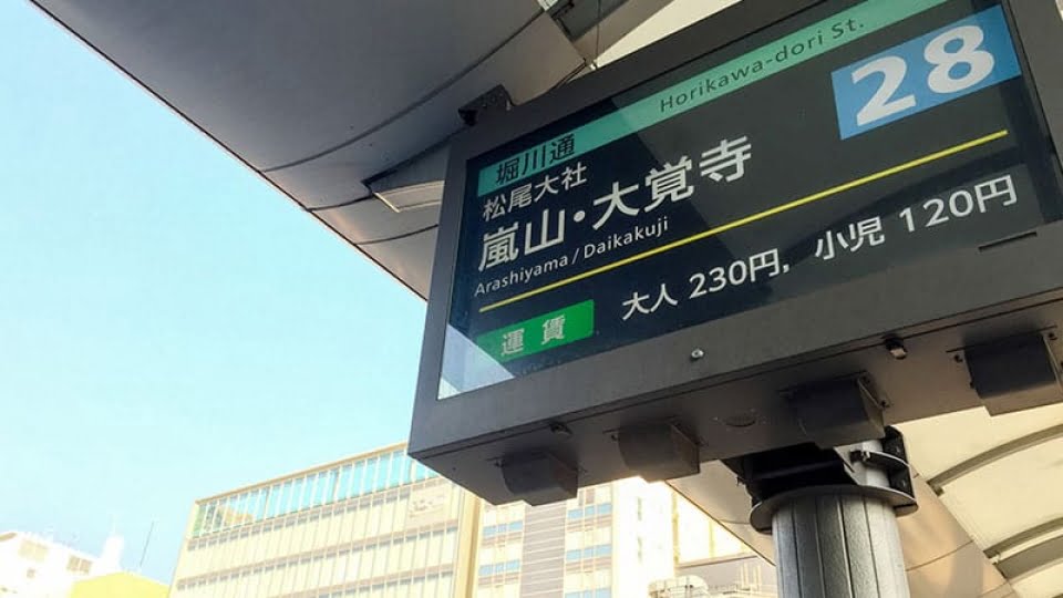 早餐仍選擇「進進堂」,今天的行程沒有像昨天的拼命,所以心態上也比較悠閒,我們還是選擇搭乘28號公車往嵐山出發。網路上有人說這種選擇很耗時,但伊娃覺得還好,而且與大家選擇不同的路線進行,感覺是另類的小冒險。看著公車上的跑馬燈,我們猶豫著該在JR嵐山站下車,還是要到嵐山天龍寺下車,後來是跟著車上不多的人群,在嵐山天龍寺前下了車。