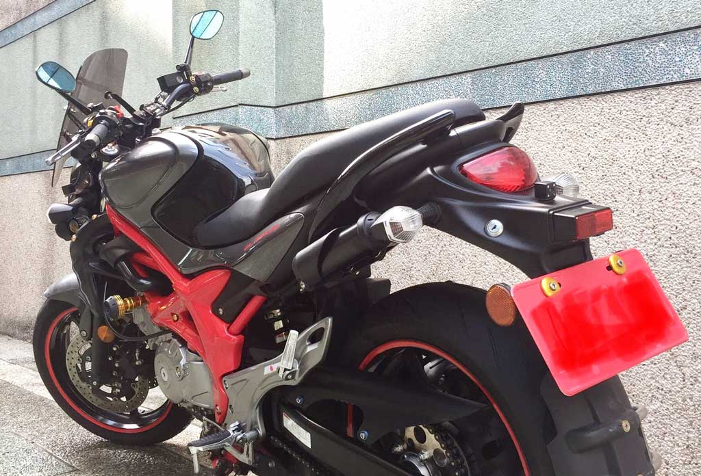 通常加裝的套件因為專車專用,所以價格都比較高昂(其實應該是非常的高昂…).而改裝套件,因為不限定車種 (但也不是非常合用),所以多數價格較低廉(低~~~很~~多~).想必各位看官可以猜想的到,大叔用的都是「改裝」套件了.其實以現實狀況而言,大叔的 Suzuki Gladius SFV650 目前已經停產,產品線由 SV650 接棒.而 SV650 可說是除了引擎與車架以外,整個外觀都打掉重練了.所以,想要找專用改裝品,也是少得可憐.
