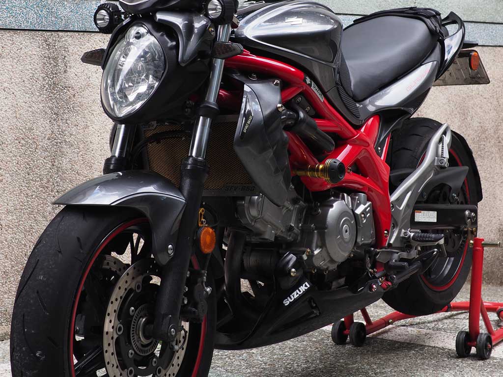 Suzuki Gladius with Black Engine Spoiler / 安裝下擾流的短刀