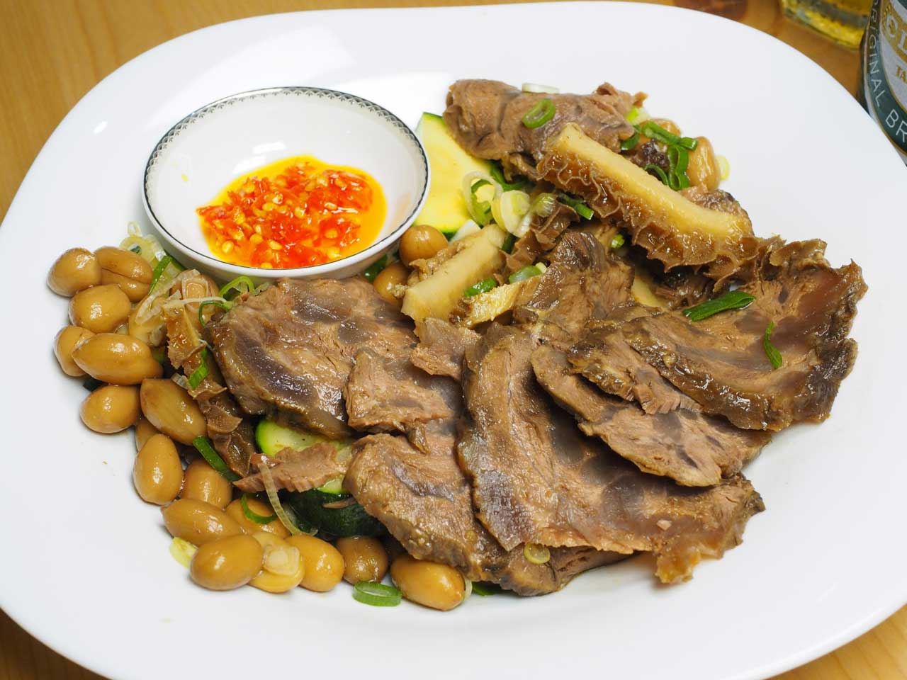 滷到筋都入味,牛腱裡的筋入口即可輕鬆化開,卻不影響腱子肉本身的口感,可聞得到清淡的中藥調料味道,又不搶掉牛肉本身的香氣。